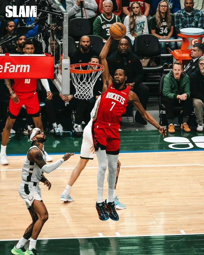 动作丝滑,一气呵成。你很难想象这是一个中锋会做的动作,没办法,这就是火箭的特权。