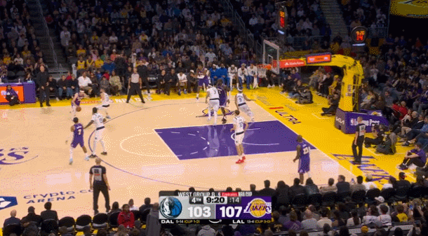 这场比赛焦点太多了,不仅是一场常规赛,还是NBA杯小组赛最后一场;浓眉复出,第一次穿着独行侠球衣客场打湖人;东契奇则是本赛季第一次打老东家;场边大佬也非常多,欧文观战,韦德担任解说,还采访了昔日队友詹姆斯——以上出现的这些名字,个个都是历史级别的巨星。