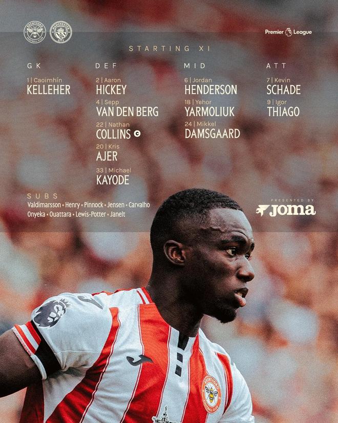 布伦特福德首发:1-凯莱赫、33-卡约德、22-内森-科林斯、20-阿耶、4-范登贝尔赫、2-阿伦-希基、6-亨德森、18-亚尔莫柳克、24-达姆斯高、7-沙德、9-伊戈尔-蒂亚戈