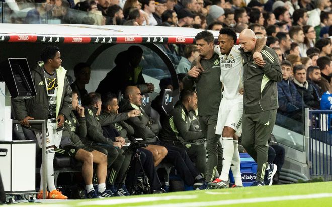 这次受伤疑似肌肉撕裂,让皇马本就脆弱的防线再受重创,伤病名单已长到足以在伯纳乌内开设诊所。